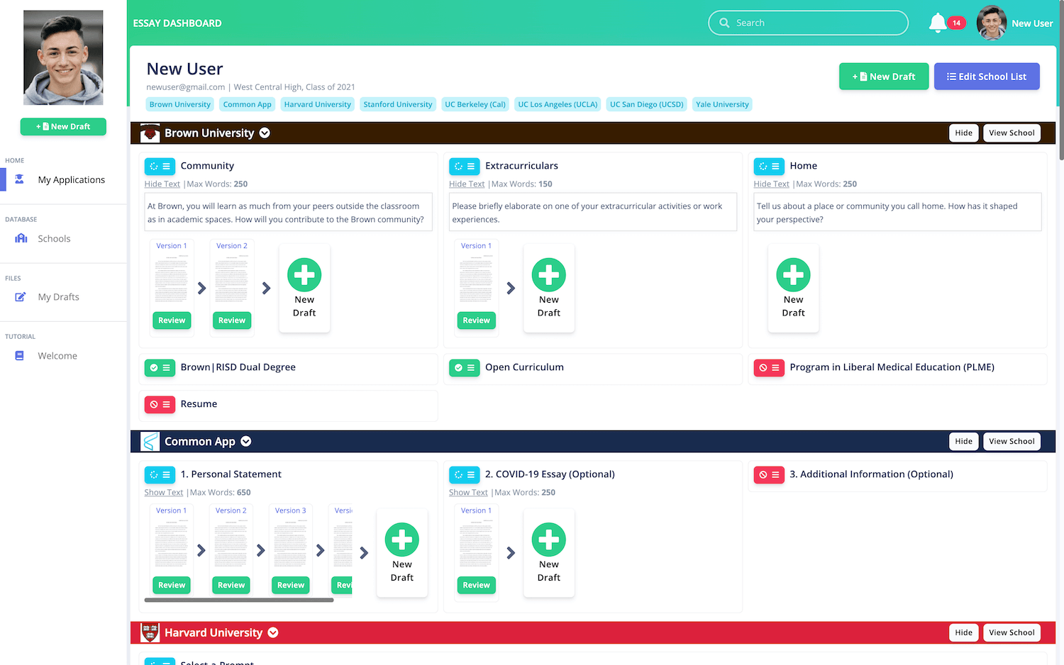 - All 850+ Common App and 150+ Coalition App schools, as well as ApplyTexas and UC colleges, have their prompts and deadlines for 2020-21 pre-filled.